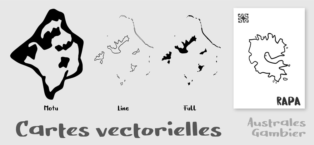 Vous obtiendrez 42 cartes vectorielles des 13 îles de l'Archipel des Australes et Gambier en Polynésie française