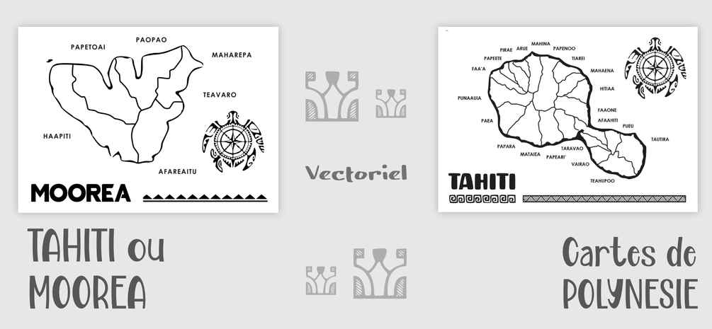Ce pack vous offre 48 documents de 8 cartes de îles de l'Archipel de la Société, en Polynésie française